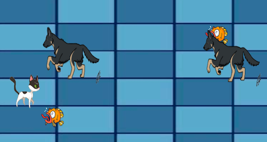A web game that uses HTML, CSS, and JavaScript. Users use the arrow keys to move the cat around, help it catch fishes without getting eaten by the dog.
