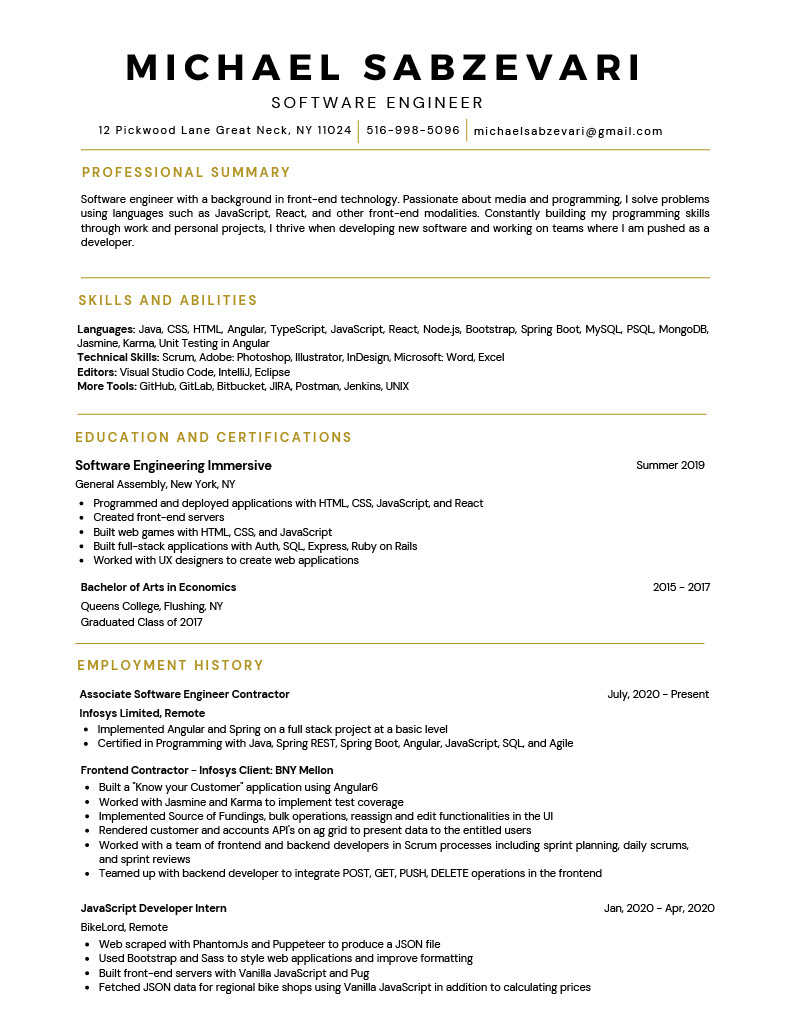 Software engineer with a background in front-end technology. Passionate about media and programming, I solve problems using languages such as JavaScript, React, and other front-end modalities. Constantly building my programming skills through work and personal projects, I thrive when developing new software and working on teams where I am pushed as a developer.